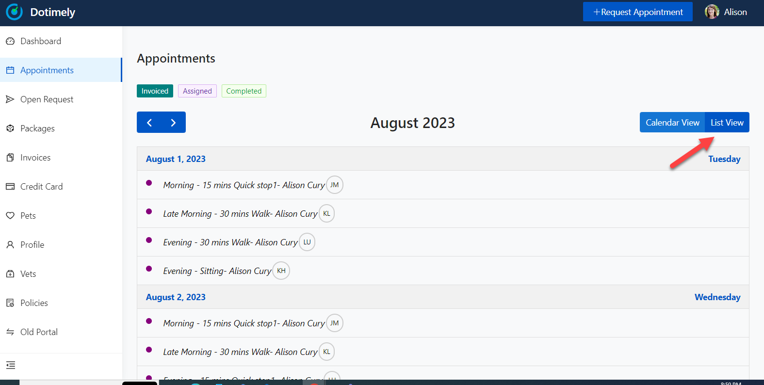 Customers can choose between the calendar view or the list view