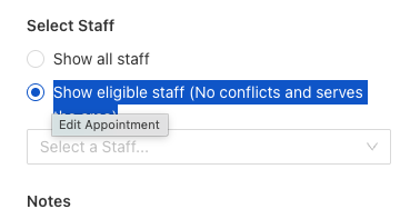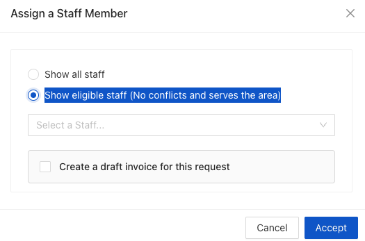 When accepting or editing an appointment request you can filter for staff members who serve the area the customer is in.