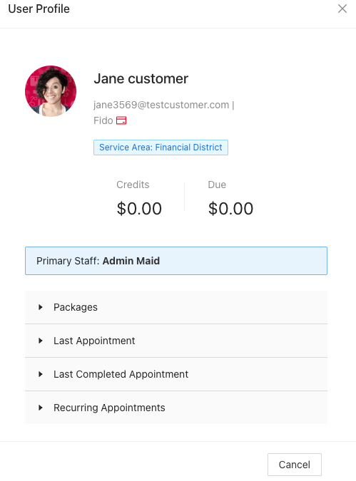 The quick profile view can be accessed by clicking on the name of the customer in the appointment request and shows the local area.